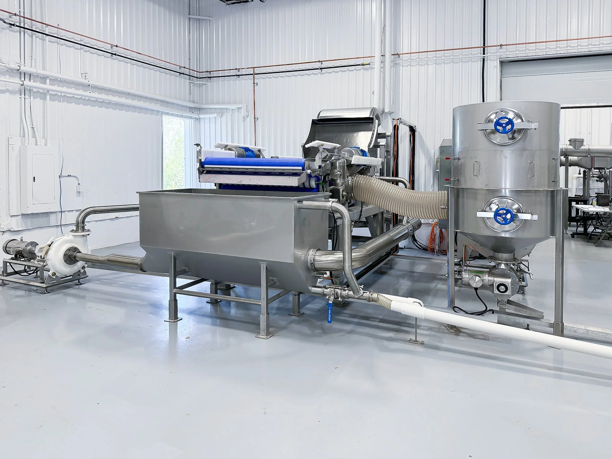 Traditional dewatering systems provide no access to blowers or air paths and employ metal mesh belts that trap product debris. This results in trapped water, fines, and organic buildup in decks, plenums, or air ducts, which can become persistent contamination risks and can be blown back onto products. Accessibility for cleaning and inspection is therefore critical to mitigate contamination risks in these systems.
